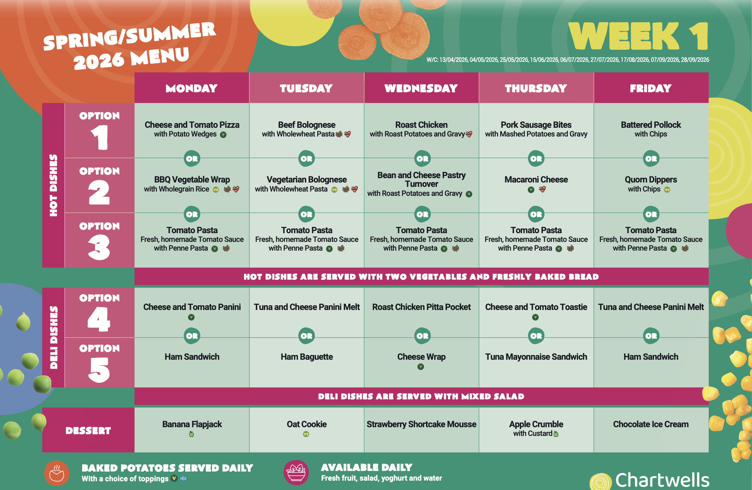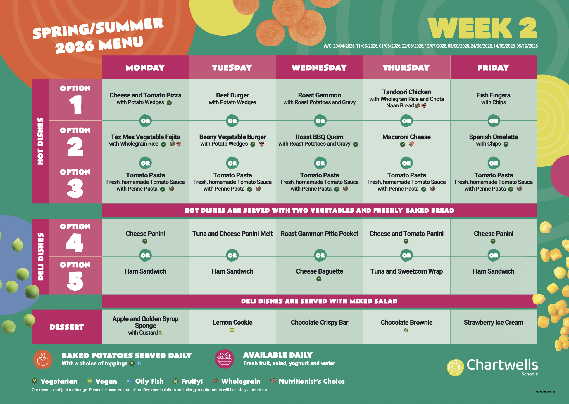 You can view the weekly menus above, just find the date for this week to see which menu applies.