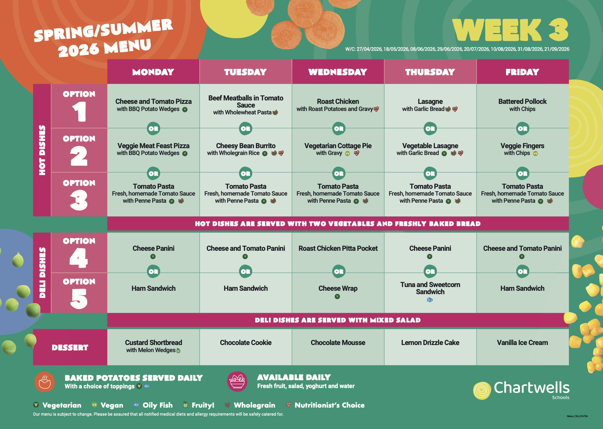 You can view the weekly menus above, just find the date for this week to see which menu applies.